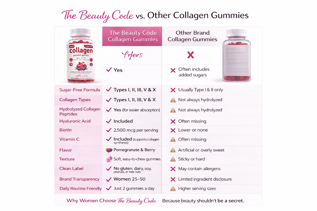 “Adding The Beauty Code™ Collagen Gummies made my routine feel effortless. My skin looks more hydrated, my hair and nails feel stronger, and I finally feel consistent — without sugar, fillers, or gatekeeping.”